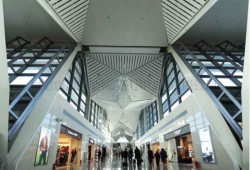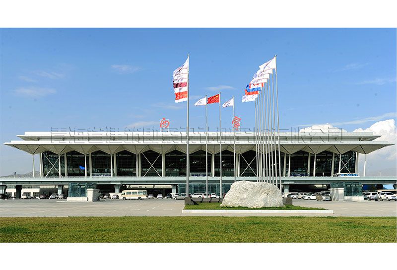 西寧曹家堡機場位于海東市互助區,航站樓距西寧市區30公里。本期航站樓設計目標為2020年年旅客吞吐量400萬人次,其中國際旅客年吞吐量3萬人次,國內旅客吞吐量397萬人次。本期航站樓呈“工”字形布局,為指廊式結構,指廊端放大為集中候機區,設10個近機位(8C4D)。高峰小時旅客吞吐量1855人,其中國內部分為1699人,國際部分為156人,高峰小時進出港旅客比例均為55%,人數均為935人。旅客中轉率為50%,旅客中轉人數85人。新航站樓總建筑面積43950.0平米,占地面積21654.0平米,地上二層,地下一層,建筑高度30.4,米,結構形式為框架、鋼結構,設計使用年限50年,抗震設防烈度7度。