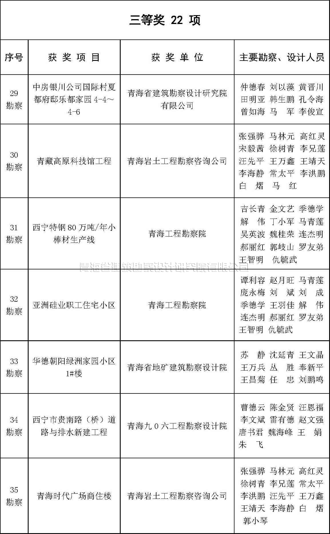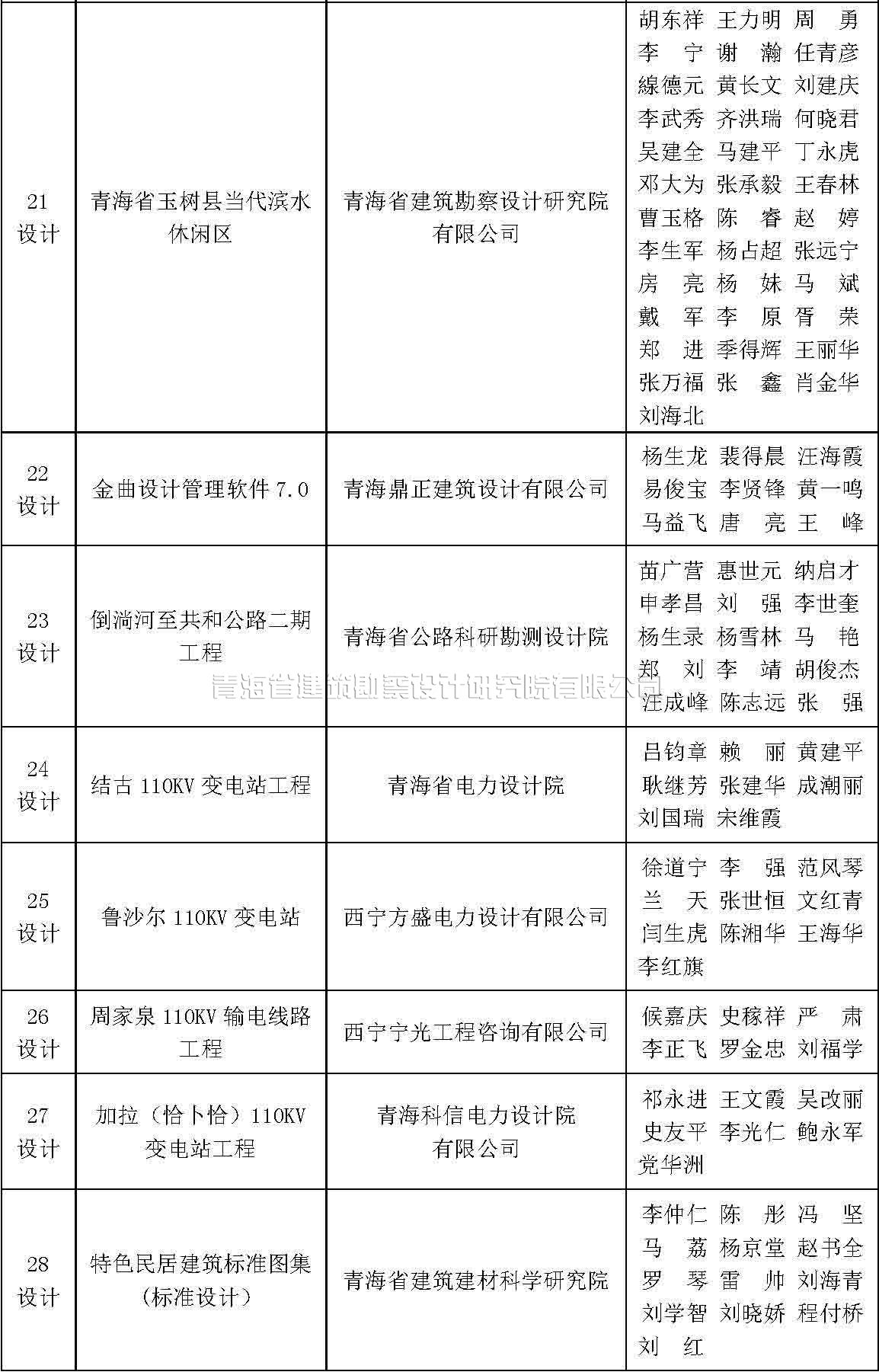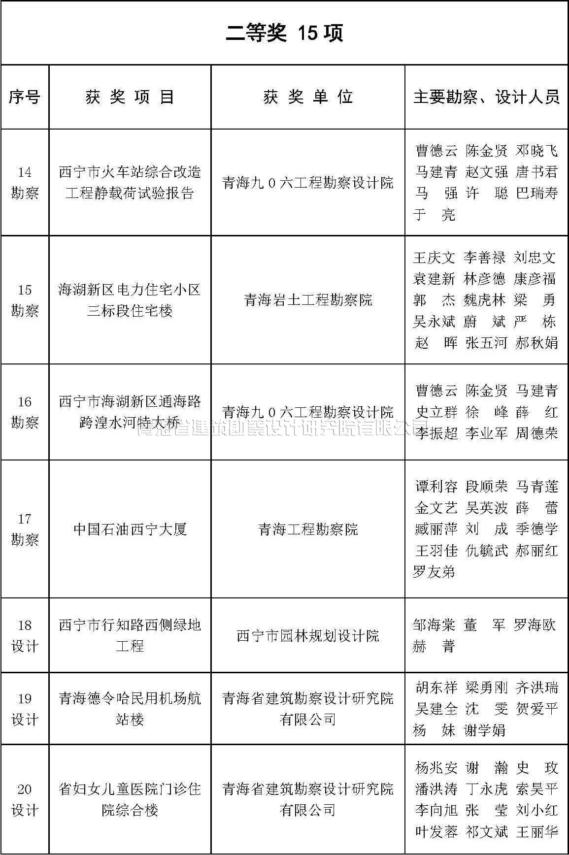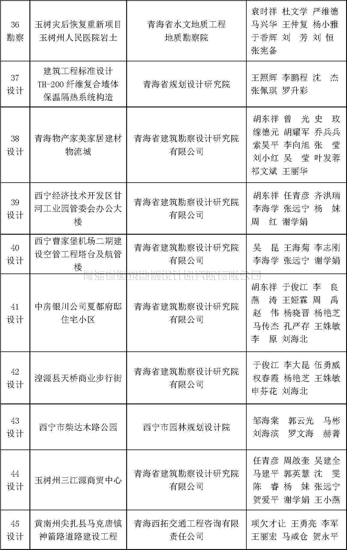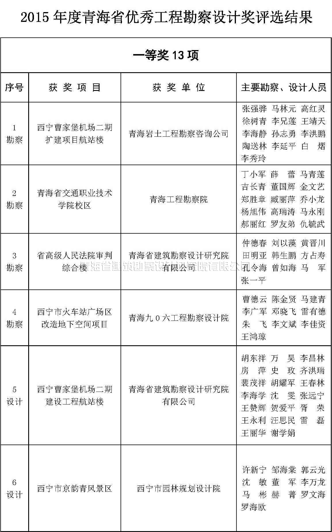 根據《青海省優秀工程勘察設計獎評選辦法》(青建設[2011]534號,以下簡稱《評選辦法》)的規定,及中國勘察設計協會《關于評選2015年度全國優秀工程勘察設計行業獎的通知》,我協會組織對2015年度青海省優秀工程勘察設計獎進行了評選。評選結果于7月15日在協會QQ群中進行了公示,現予以公布。