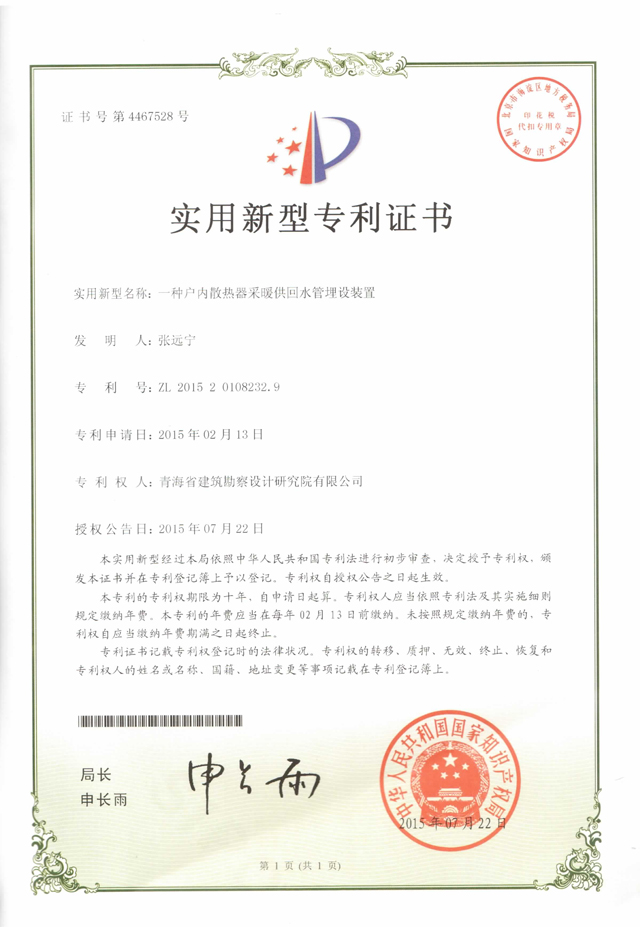 2015年度,我公司依靠行業科技人才的優勢,加大研發力度,專利技術取得了顯著成效。按照國家有關專利技術申報工作要求,共申報專利技術9項,經國家知識產權局核批,其中8項獲得“實用新型專利證書”,這8項專利技術分別為: