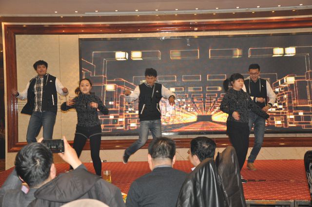 公司總結表彰會結束后,2016年迎春文藝演出閃亮登場。隨著兩位主持人華麗的開場詞,“才藝達人”精心準備的歌曲、舞蹈節目為員工送上了新春的祝福。節目既突出了節儉大方的格調,又不失歡快熱烈的氣氛。現場不時爆出陣陣熱烈的掌聲。同時,在節目演出中還穿插抽獎活動,邀請公司各領導公開抽取幸運獎。演出精彩落幕后,公司黨委書記沈波立致祝酒詞。整個團拜會場面,燈火通明,熱鬧祥和,觥籌交錯,祝語飛揚,董事長王力明等公司領導高舉酒杯,沿桌為全體員工提前拜年。大家齊聚一起,共同慶祝2015年度取得的輝煌成績,在笑語歡聲中暢想著2016年的美好愿景。