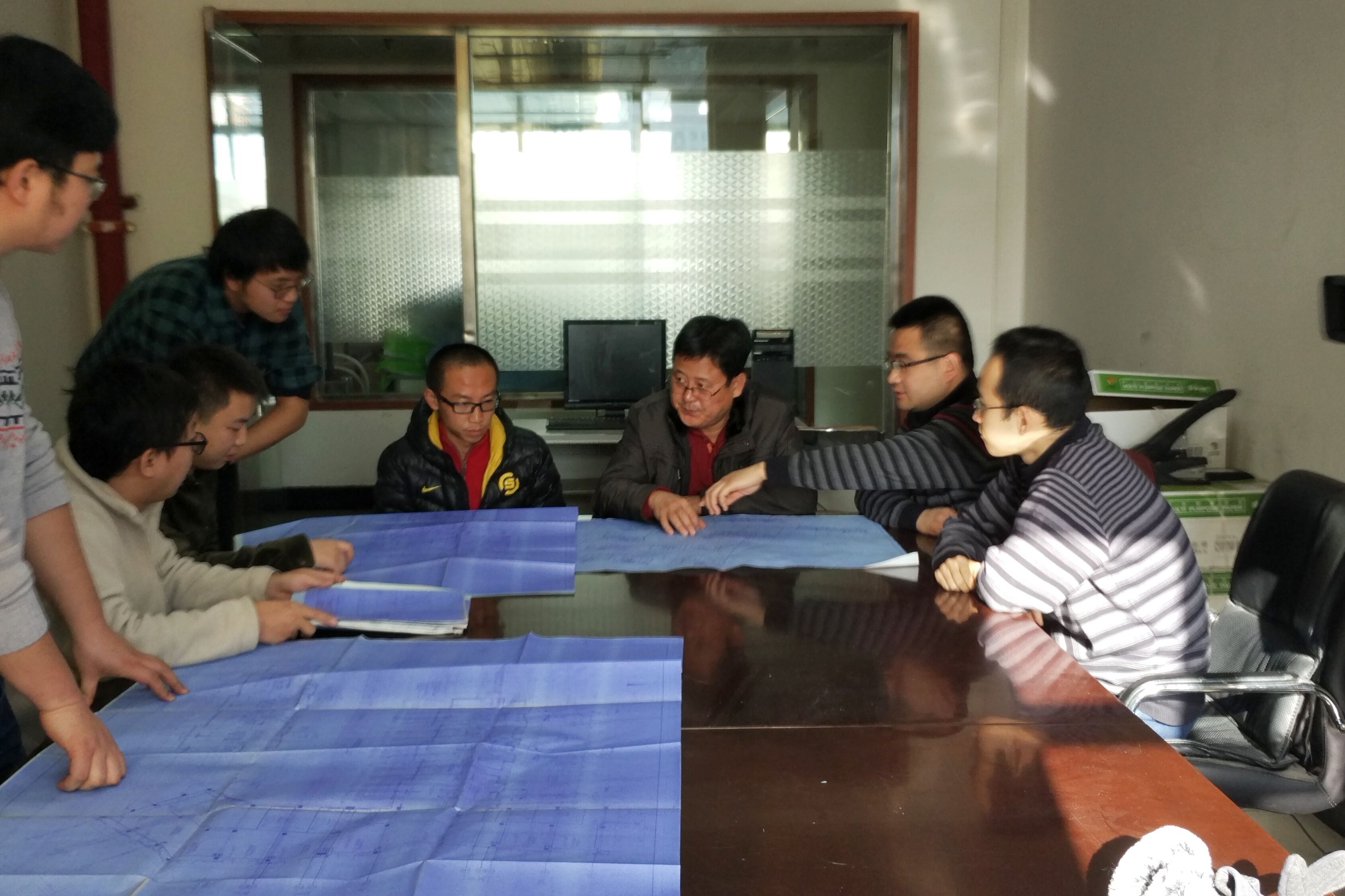 專訪結束后,記者錄拍了貴賓廳陳列的一些公司獲得了重要榮譽牌匾。接著,在公司工作人員的引導下,到各設計所了解一線人員的工作情況,并對設計二所技術人員王麗華高級工程師進行了簡短采訪,王麗華同志從電氣設計角度談了“誠信是社會效益的重要組成部分,只有以甲方的合理需求為出發點,嚴格按設計規范誠信設計,才能求得企業的長遠發展”。記者隨后又來到設計四所,公司監事會主席、四所所長于俊江和所設計人員正在討論一些設計問題,記者拍攝了一些他們一起忙碌的工作畫面。