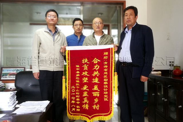 自今年6月份以來,在青海省住建廳統一協調和督導下,沈波立書記多次到聯點幫扶村——拉卡山村和魏家堡村實地了解扶貧情況,與村干部一起謀劃適合于本村脫貧致富的有效對策,通過走訪和實地查看等,為二村脫貧提出了一些好的建設性意見。同時還為二村捐助了一定的扶貧資金。為感謝公司一年來對拉卡山村的熱心幫扶,2017年9月1日,拉卡山村村主任等村干部送來一面錦旗,以表感激之情。公司黨委書記沈波立和副總經理、工會主席鄒繼青一同接受了贈送的錦旗。