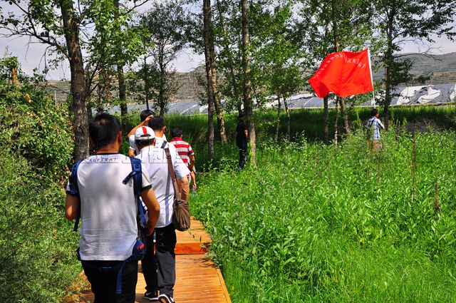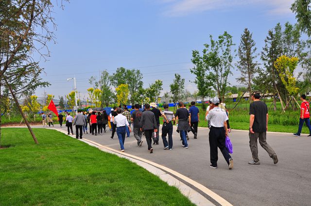 約一個小時的行程,三輛旅游大巴抵達徒步目的地,置身這里,呼吸著城市中少有的新鮮空氣,看著遠道而來的游客同家人朋友閑庭信步,騎自行車或乘坐景區觀光車,沿著蜿蜒舒適的環形主路線,欣賞園內規劃的幾個生態觀光功能區,愜意的心情怎能不油然而生,員工們迫不及待的賞景之心已噴張在嗓子眼。公司董事長王力明、黨委書記沈波立和工會主席鄒繼青迅速動員大家,在中午就餐的飯店門前整齊列隊,一起合影留念。隨后,工會主席鄒繼青一聲令下,公司領導和全體員工一同開始了這次迎“七一”徒步健身活動。