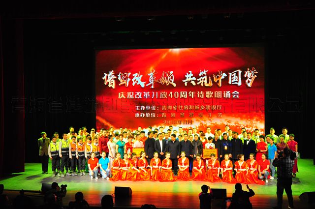 為紀念改革開放40周年,熱情謳歌改革開放以來全省建設職工在黨的領導下,在經濟建設、政治建設、文化建設、社會建設、生態文明建設以及全面建成小康社會、全面深化改革、全面推進依法治國、全面從嚴治黨中取得的偉大成就,2018年11月23日,青海省住建廳、青海省建設工會在省文化館群星劇院舉辦了“譜寫改革頌,共筑中國夢”—— 省住建廳慶祝改革開放40周年詩歌朗誦會。省住建廳王發昌廳長、李勇副廳長等相關領導參加了詩歌朗誦會。