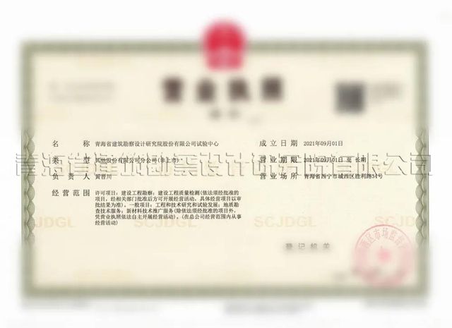 2021年9月1日,我公司成功注冊分公司——“青海省建筑勘察設計研究院股份有限公司試驗中心”,標志著公司巖土試驗檢測工作向高質量發展方向邁出了可喜的一步,也預示著試驗中心在業務范圍、儀器設備配置、功能定位及發展方向等方面有了更高的目標要求和技術提升。