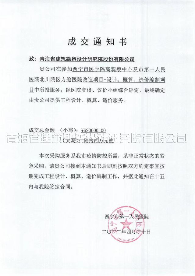 疫情肆虐,速建方艙。攜手抗疫,省院擔當。420日,在西寧市鞏固疫情防控成果的關鍵時刻,傳來中標喜訊:青海省院憑借綜合技術實力,中標“西寧市醫學隔離觀察中心及市第一人民醫院北川園區方艙醫院改造項目——設計、概算、造價編制項目”。