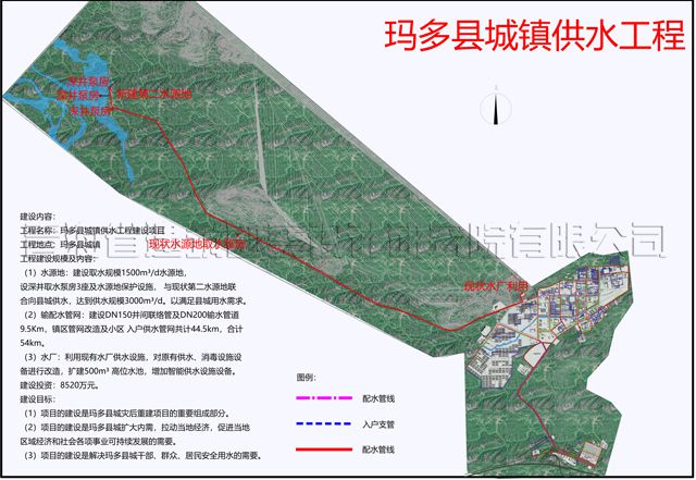 果洛州瑪多縣城鎮(zhèn)供水工程建設(shè)項目位于瑪多縣瑪查理鎮(zhèn),總投資8520萬元,中標(biāo)額218.87萬元,其中主要包括1500m3/d水源地建設(shè)、54km輸配水管網(wǎng)建設(shè)、原有水廠改造等。