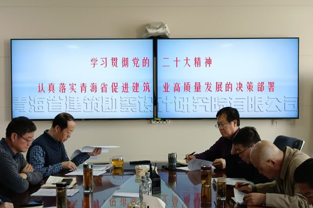 2023年2月20日,公司在六樓會議室組織召開以“學習貫徹黨的二十大精神,認真落實青海省促進建筑業高質量發展決策部署”為主題的會議,公司領導及各部門主要負責人參加了會議。會議的主要議題:1.學習傳達全省住房城鄉建設高質量發展工作會議精神;2.學習傳達省人民政府辦公廳關于印發《青海省促進建筑業高質量發展若干措施》的通知文件精神。會議由公司董事長王力明主持并傳達。